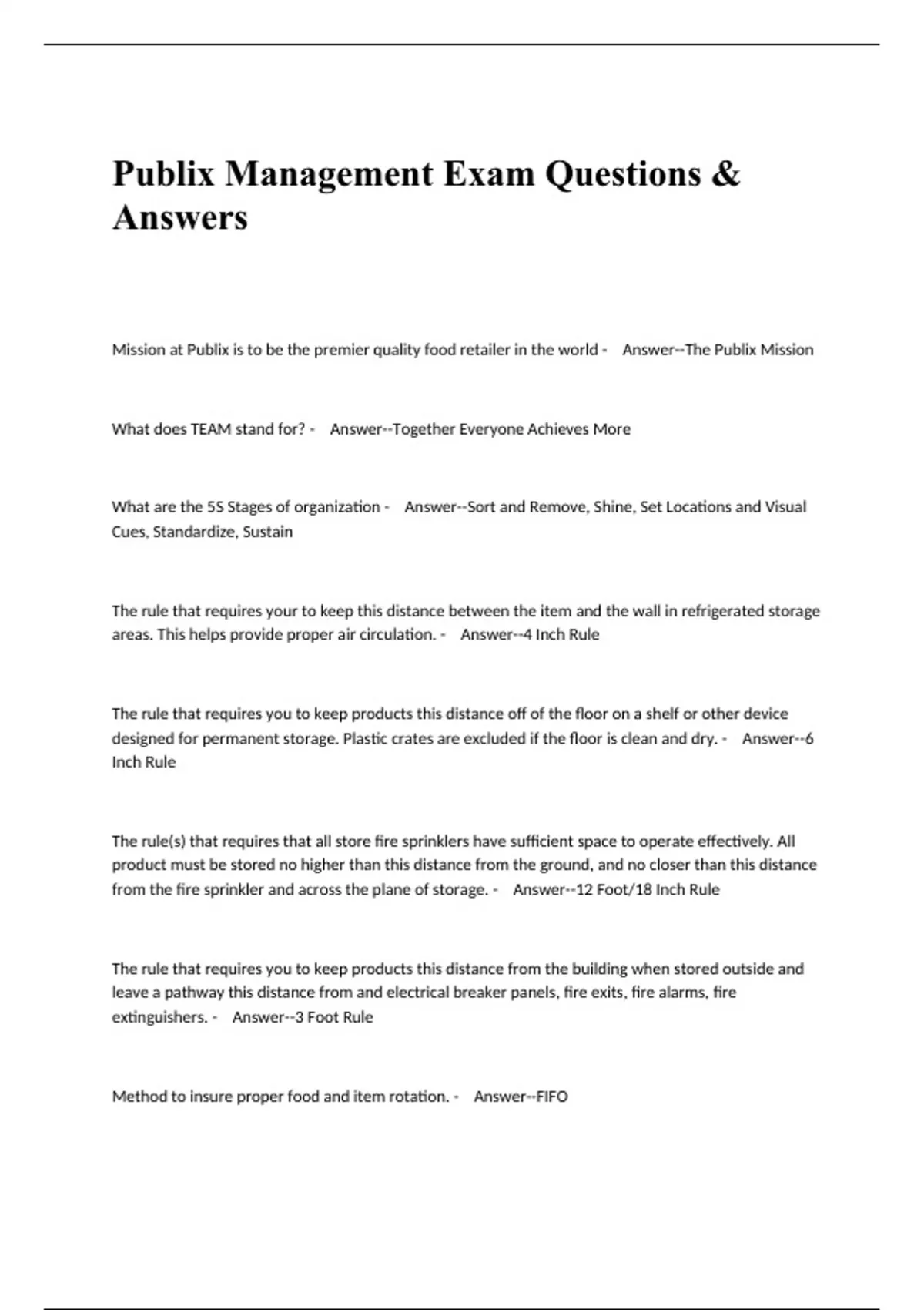 Publix Management Exam Questions & Answers.
