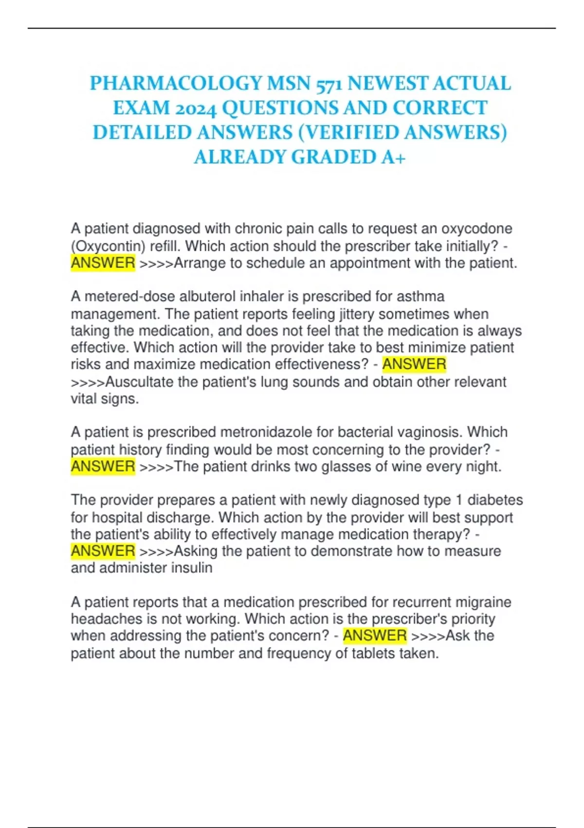 PHARMACOLOGY MSN 571 NEWEST ACTUAL EXAM 2024 QUESTIONS AND CORRECT DETAILED ANSWERS (VERIFIED ANSWERS) ALREADY GRADED A+.PHARMACOLOGY MSN 571 NEWEST ACTUAL EXAM 2024 QUESTIONS AND CORRECT DETAILED ANSWERS (VERIFIED ANSWERS) ALREADY GRADED A+.PHARMACOLOGY MSN 571 NEWEST ACTUAL EXAM 2024 QUESTIONS AND CORRECT DETAILED ANSWERS (VERIFIED ANSWERS) ALREADY GRADED A+.PHARMACOLOGY MSN 571 NEWEST ACTUAL EXAM 2024 QUESTIONS AND CORRECT DETAILED ANSWERS (VERIFIED ANSWERS) ALREADY GRADED A+.PHARMACOLOGY MSN 571 NEWEST ACTUAL EXAM 2024 QUESTIONS AND CORRECT DETAILED ANSWERS (VERIFIED ANSWERS) ALREADY GRADED A+.PHARMACOLOGY MSN 571 NEWEST ACTUAL EXAM 2024 QUESTIONS AND CORRECT DETAILED ANSWERS (VERIFIED ANSWERS) ALREADY GRADED A+.PHARMACOLOGY MSN 571 NEWEST ACTUAL EXAM 2024 QUESTIONS AND CORRECT DETAILED ANSWERS (VERIFIED ANSWERS) ALREADY GRADED A+.
