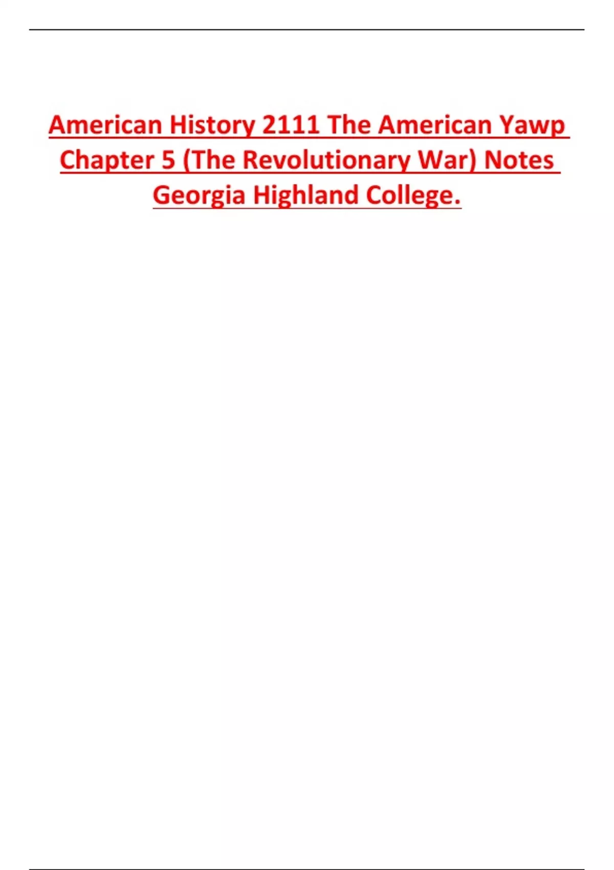American History 2111 The American Yawp Chapter 5 (The Revolutionary War) Notes Georgia Highland College.
