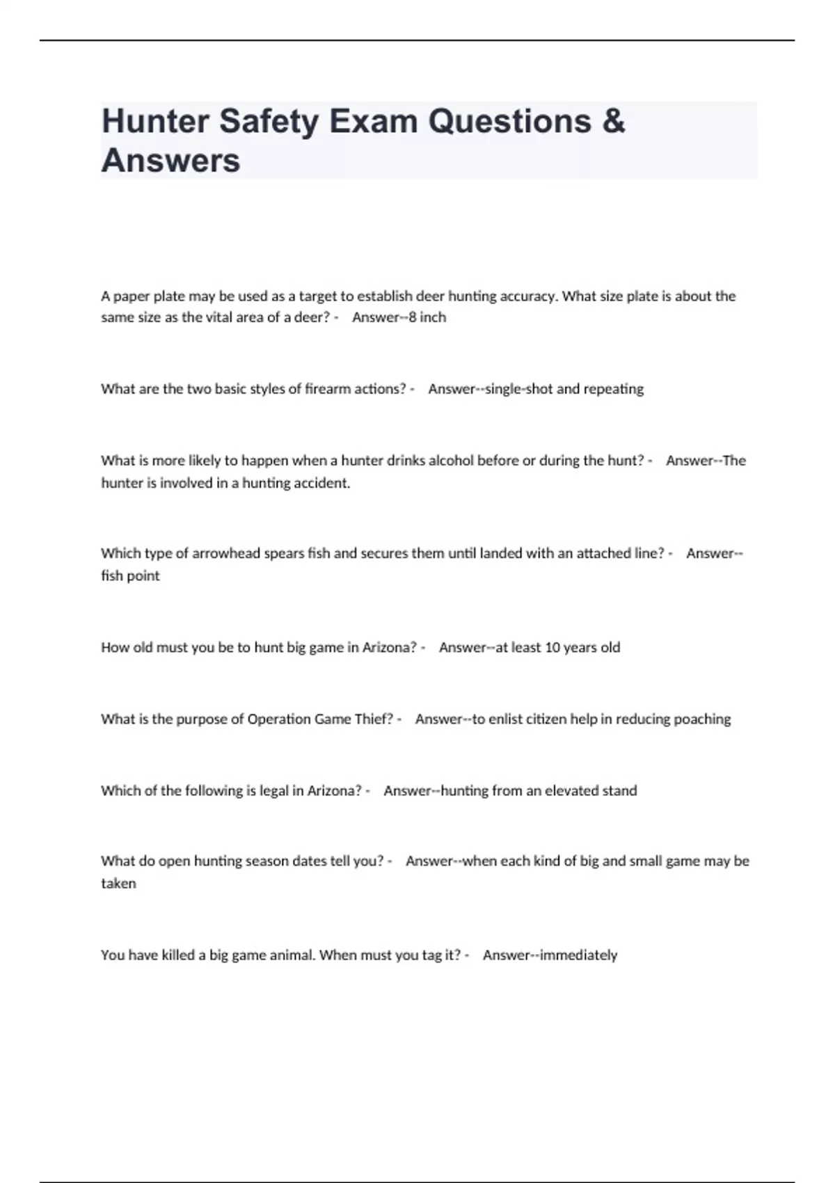 Hunter Safety Exam Questions & Answers.