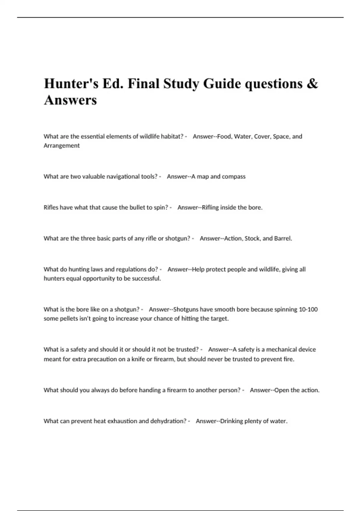 Hunter's Ed. Final Study Guide questions & Answers.