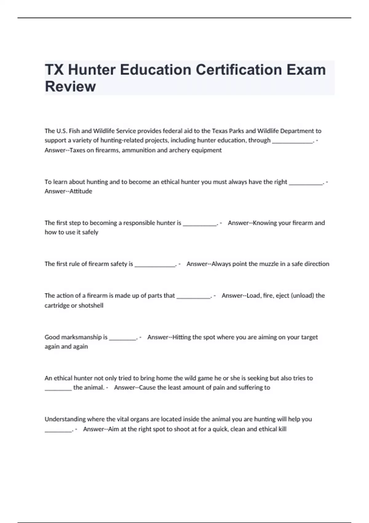 TX Hunter Education Certification Exam Review