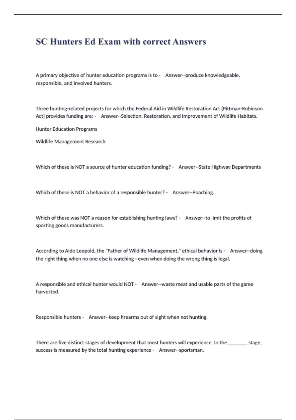 SC Hunters Ed Exam with correct Answers.