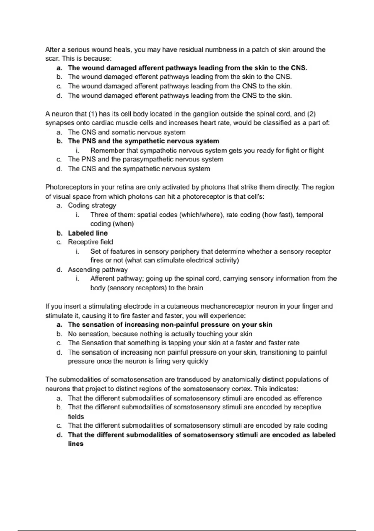 Boston Uni BI315 Unit 2 set of 19 multiple choice in-class practice questions for exam with answers. Focused on sensation, muscle fibers & axons, and hormones. These are good MCAT and exam practice questions. They are not straight-forward, they require you to think more!
