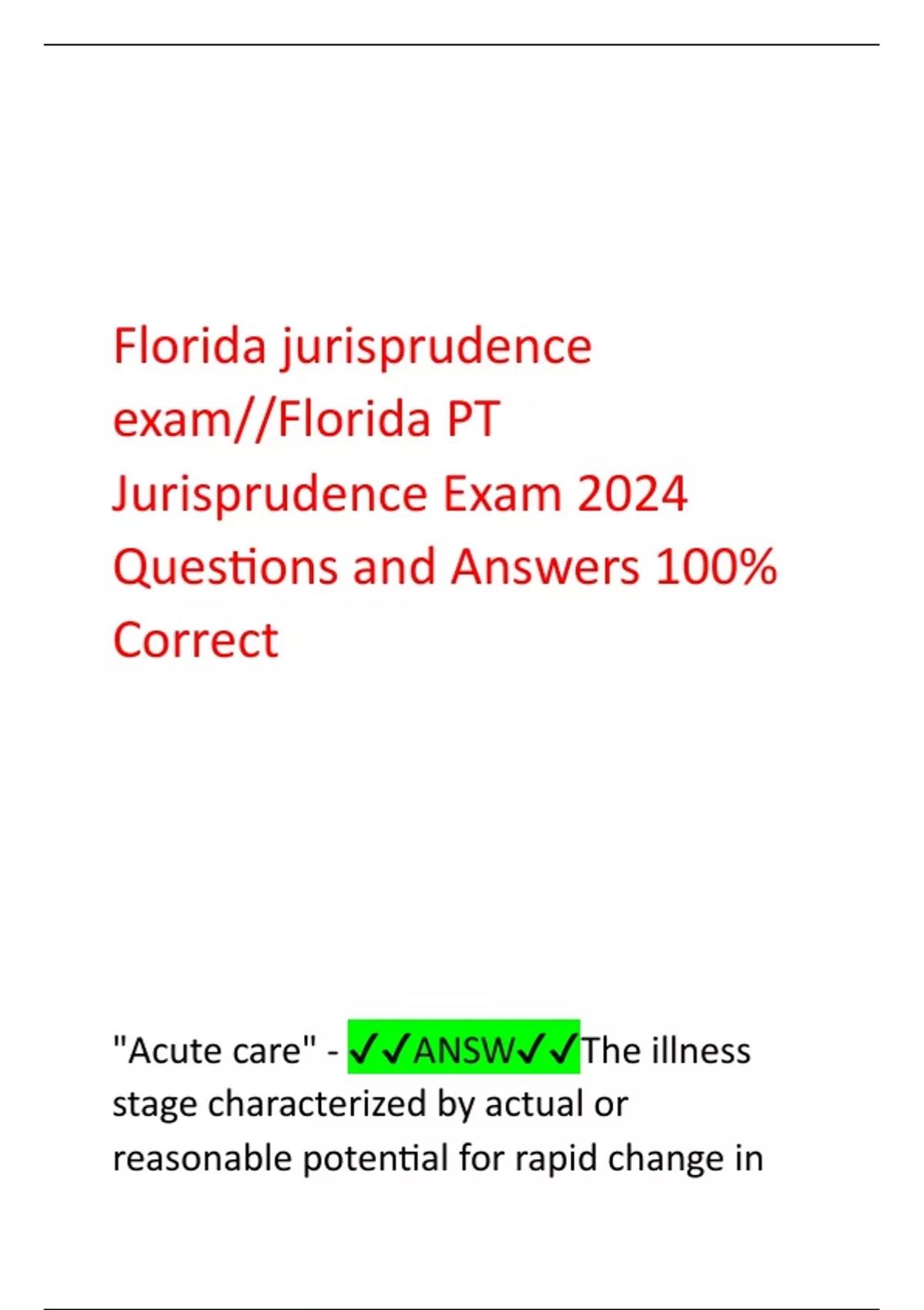 Florida jurisprudence exam//Florida PT Jurisprudence Exam 2024 Questions and Answers 100% Correct Florida jurisprudence exam//Florida PT Jurisprudence Exam 2024 Questions and Answers 100% Correct Florida jurisprudence exam//Florida PT Jurisprudence Exam 2024 Questions and Answers 100% Correct