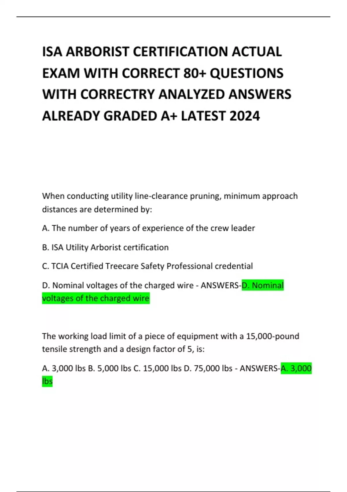 ISA ARBORIST CERTIFICATION ACTUAL EXAM WITH CORRECT 80+ QUESTIONS WITH CORRECTRY ANALYZED ANSWERS ALREADY GRADED A+ LATEST 2024