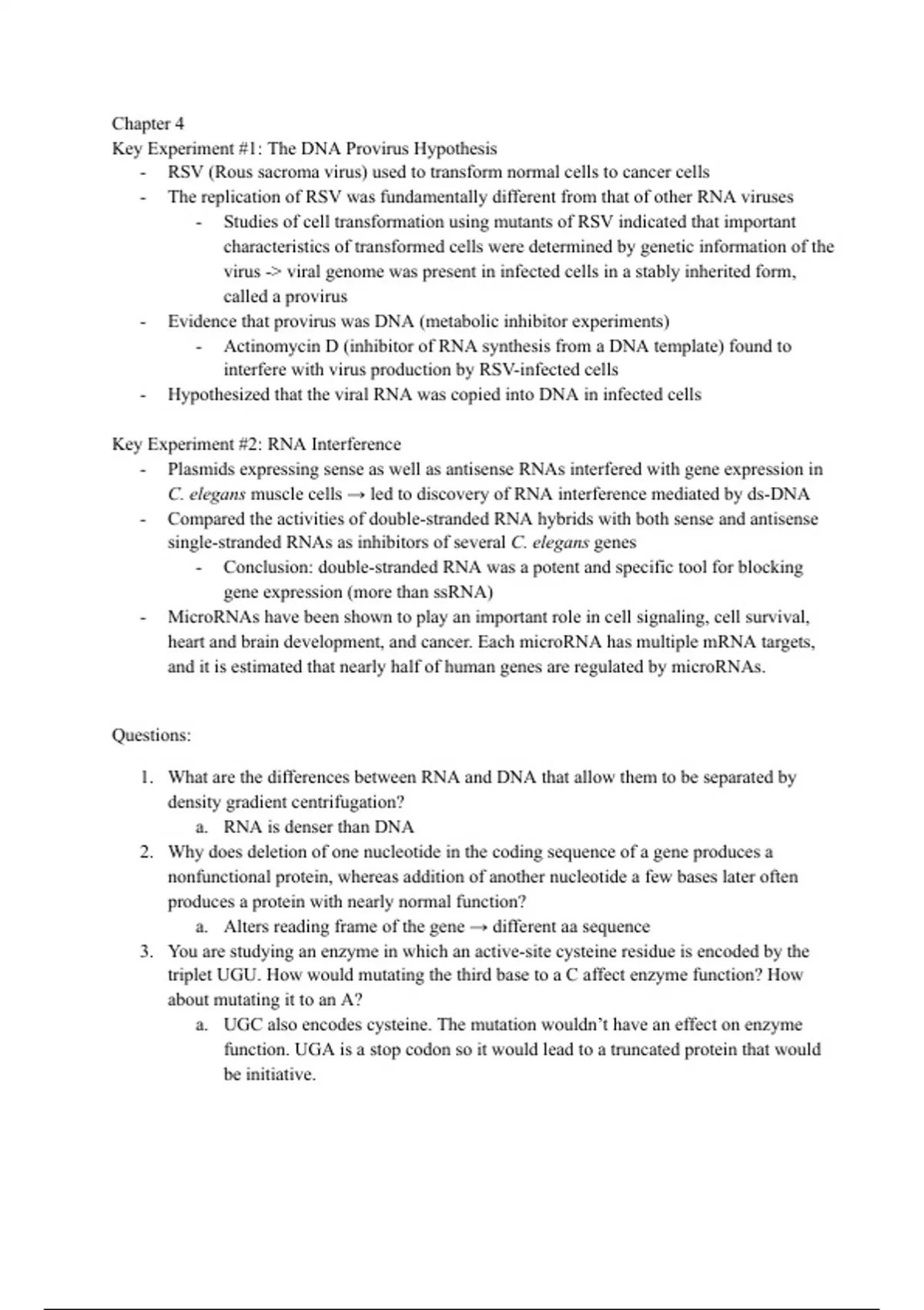 document for summary for midterm. focuses on definitions of important terms to know for DNA transcription, interference, transformation, etc. Terms include RNA (mRNA, tRNA, rRNA, RNAi, siRNA, miRNA, etc.), recombinant technology, ORI, DNA ligase, blotting techniques, PCR, transfection, CRISPR/Cas system, transient expression, exons/introns, simple-sequence repeats, SINEs and LINEs, CENP-A Histones, telomeres, transposons, heterochromatin, DNA ligase, steps for replication, etc.. To reiterate -- these are largely definitions to help organize everything and some brief steps (i.e. steps for replication broken into 10 summary steps). Good for review before exam or for studying for MCAT Biology. There are about 30 questions including to think about and to aim to learn for such topics. Answers are NOT provided and not all the questions are straightforward -- they will require you to critically think and apply! Incredibly helpful.