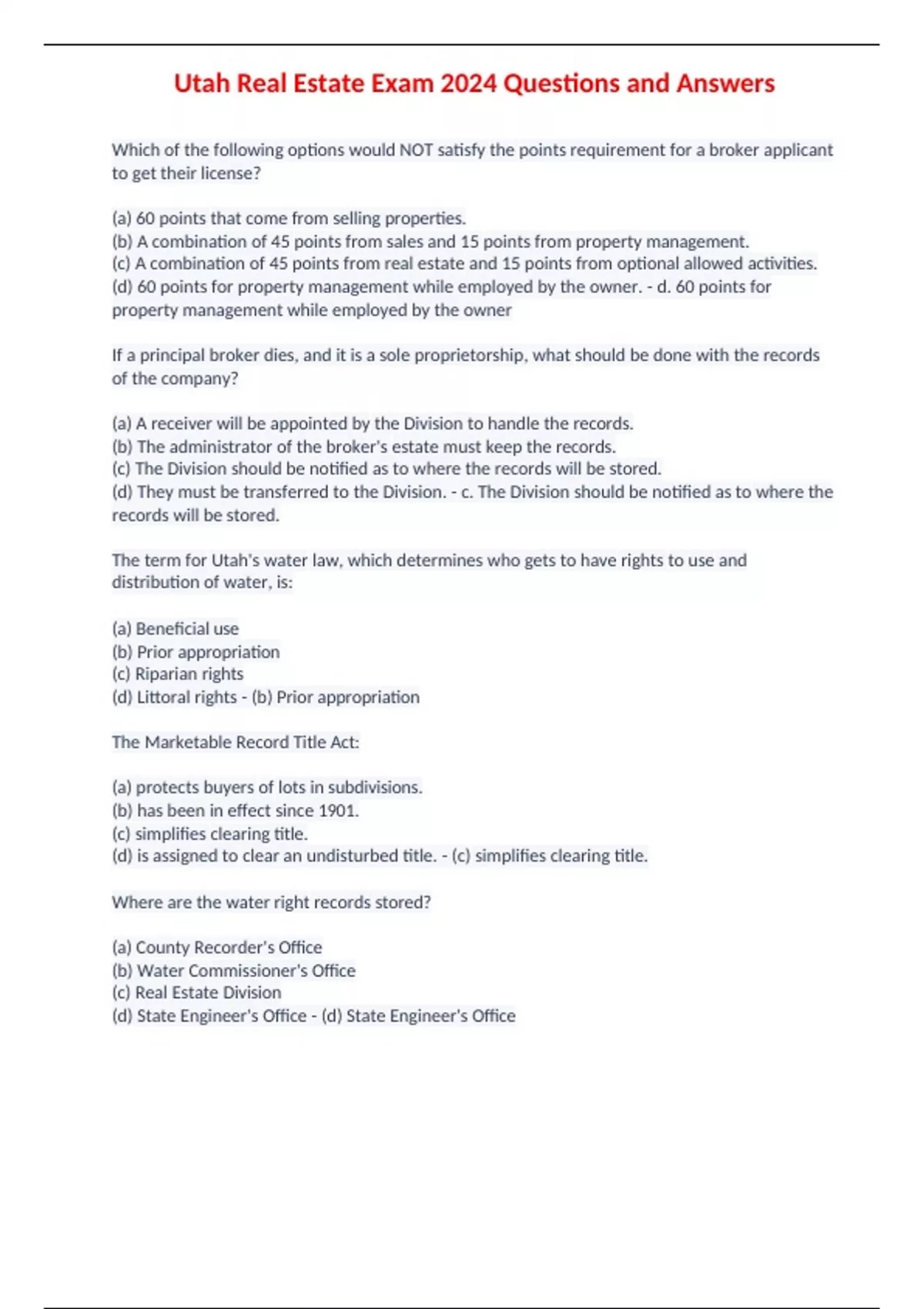 Utah Real Estate Exam 2024 Questions and Answers