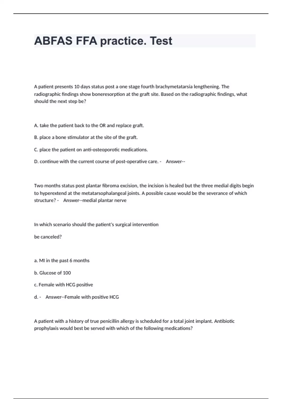 ABFAS FFA practice. Test