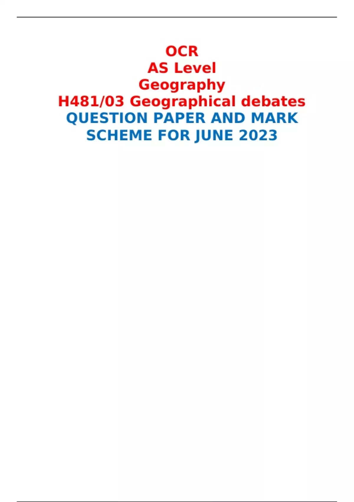 OCR AS Level Geography H481/03 Geographical debates QUESTION PAPER AND MARK SCHEME FOR JUNE 2023