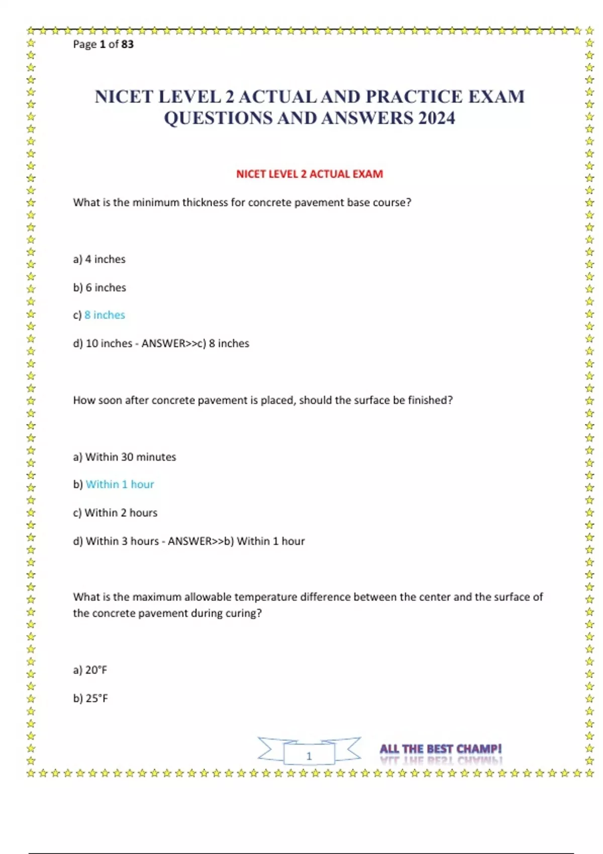 NICET LEVEL 1 , LEVEL 2 AND LEVEL 3 HIGHWAY CONSTRUCTION NEWEST 2024 ACTUAL EXAM1000 QUESTIONS AND CORRECT DETAILED ANSWERS WITH RATIONALES (VERIFIED ANSWERS) ALREADY GRADED A+