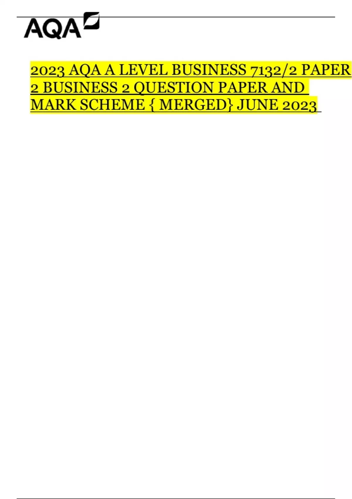 2023 AQA A LEVEL BUSINESS 7132/2 PAPER 2 BUSINESS 2 QUESTION PAPER AND MARK SCHEME { MERGED