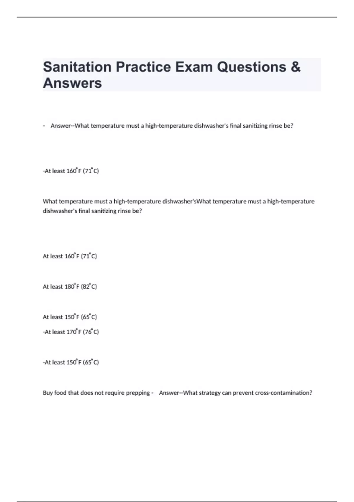 Sanitation Practice Exam Questions & Answers.