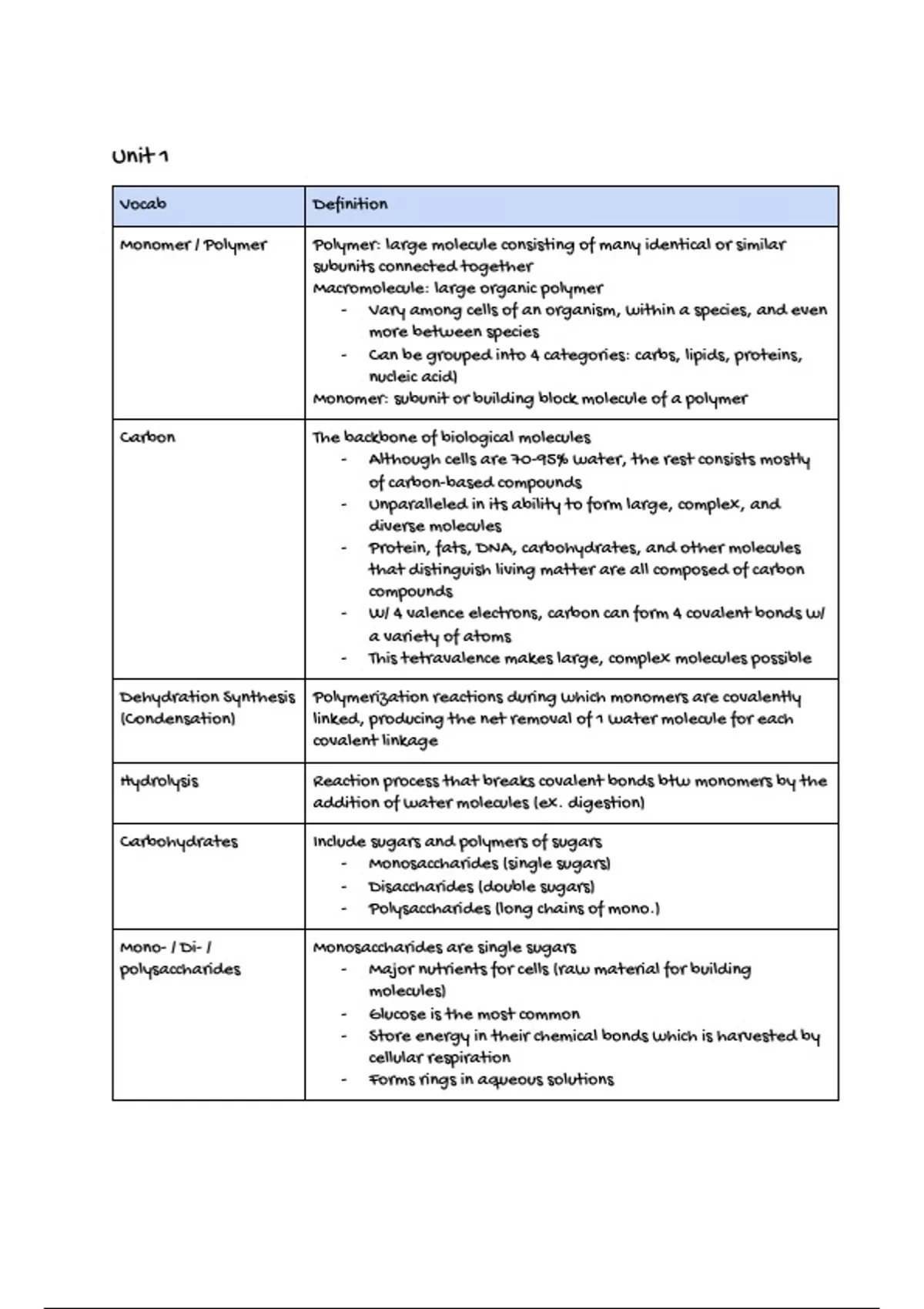 Detailed notes of all vocabulary words in Unit 1 of AP Biology, including visuals and examples.