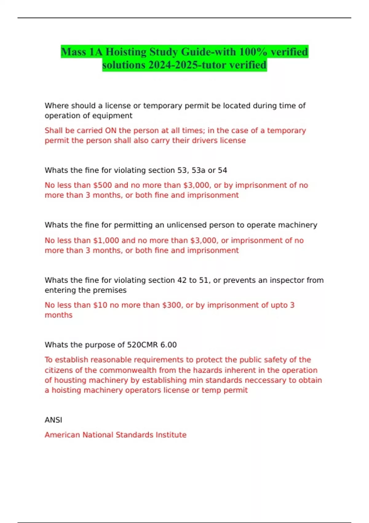 Mass 1A Hoisting Study Guide-with 100% verified solutions -tutor verified