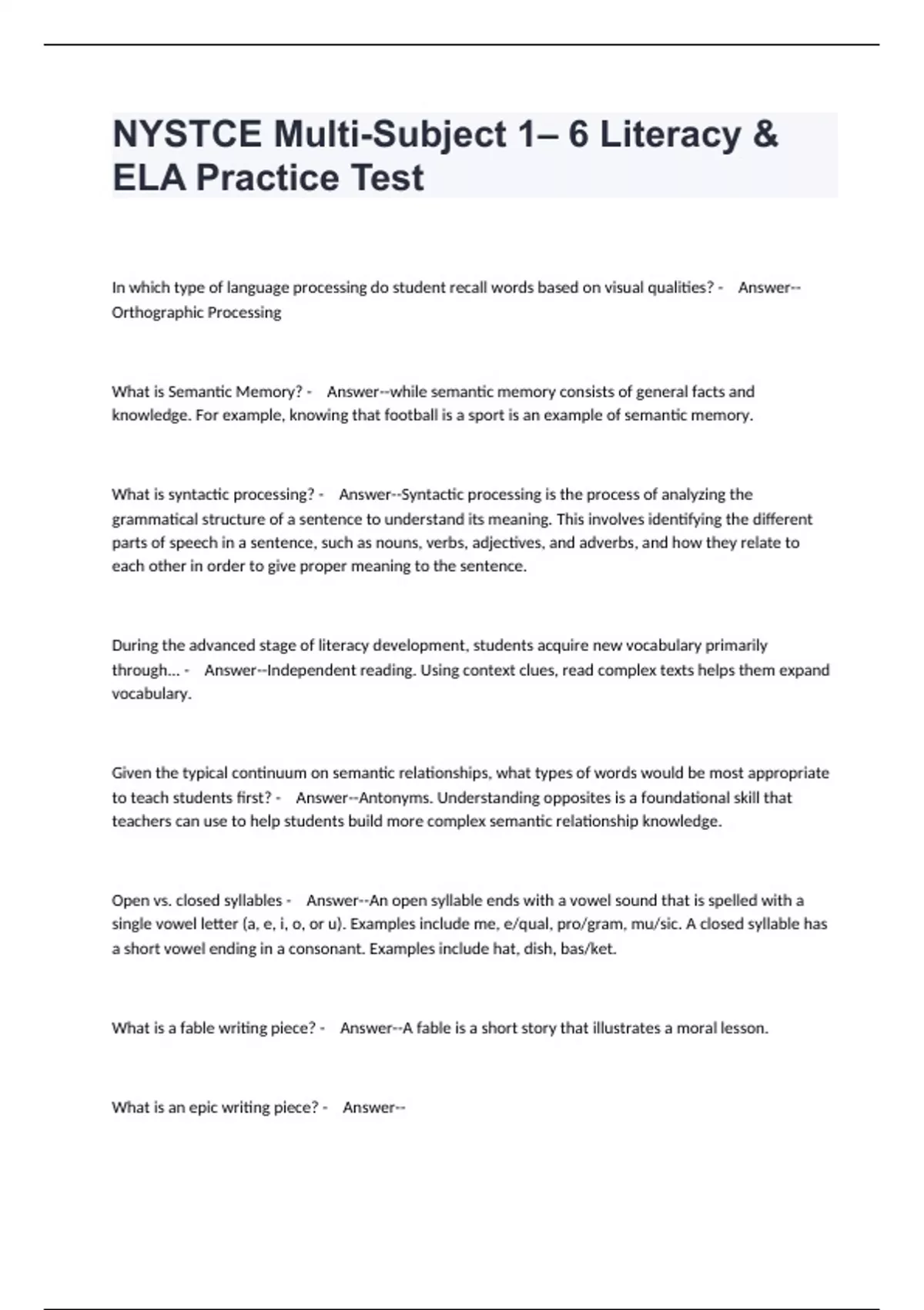 NYSTCE Multi-Subject 1– 6 Literacy & ELA Practice Test.