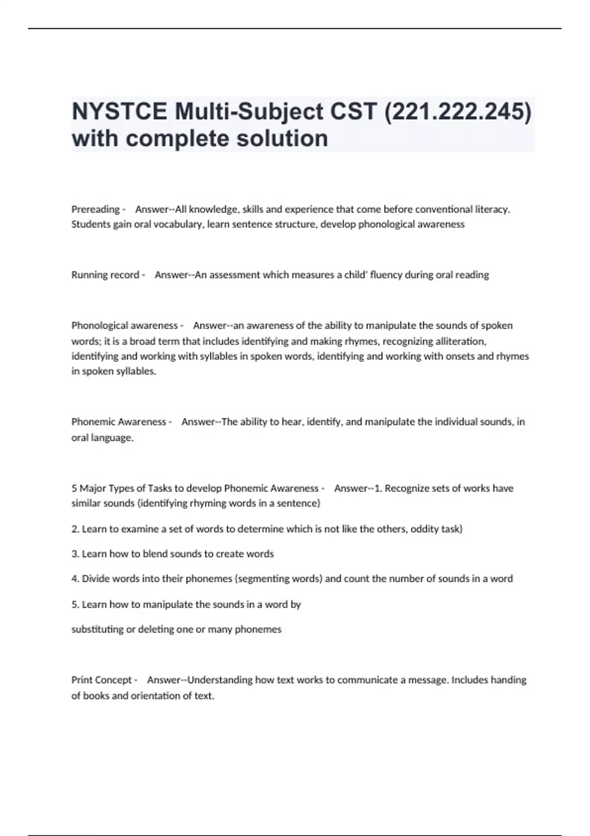 NYSTCE Multi-Subject CST (221.222.245) with complete solution