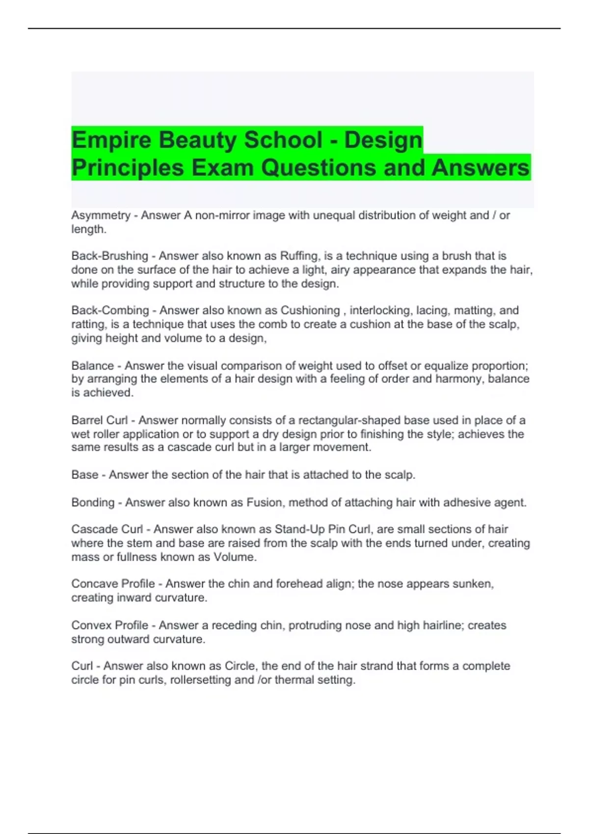 Empire Beauty School - Design Principles Exam Questions and Answers