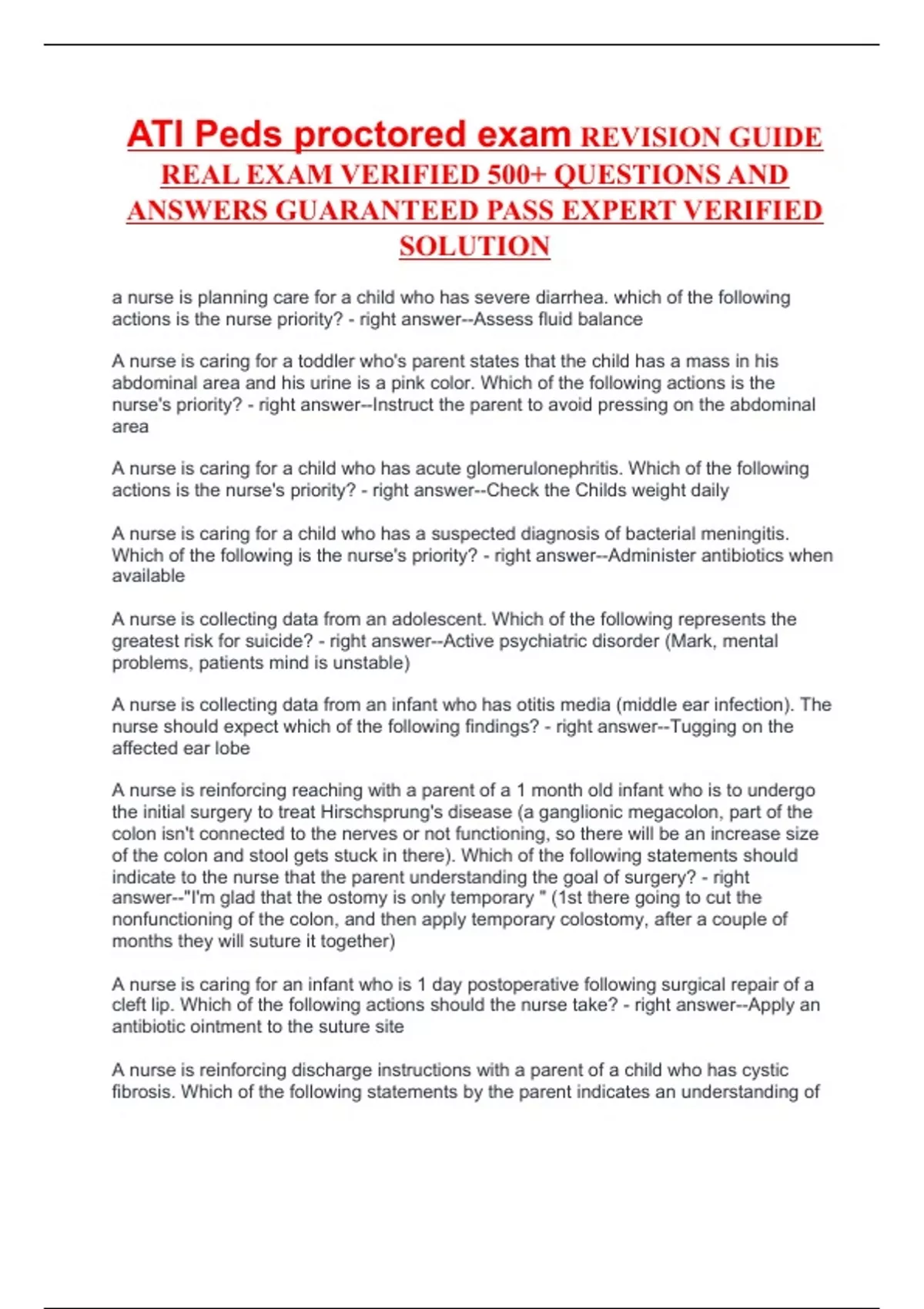 ATI Peds proctored exam REVISION GUIDE REAL EXAM VERIFIED 500+ QUESTIONS AND ANSWERS GUARANTEED PASS EXPERT VERIFIED SOLUTION