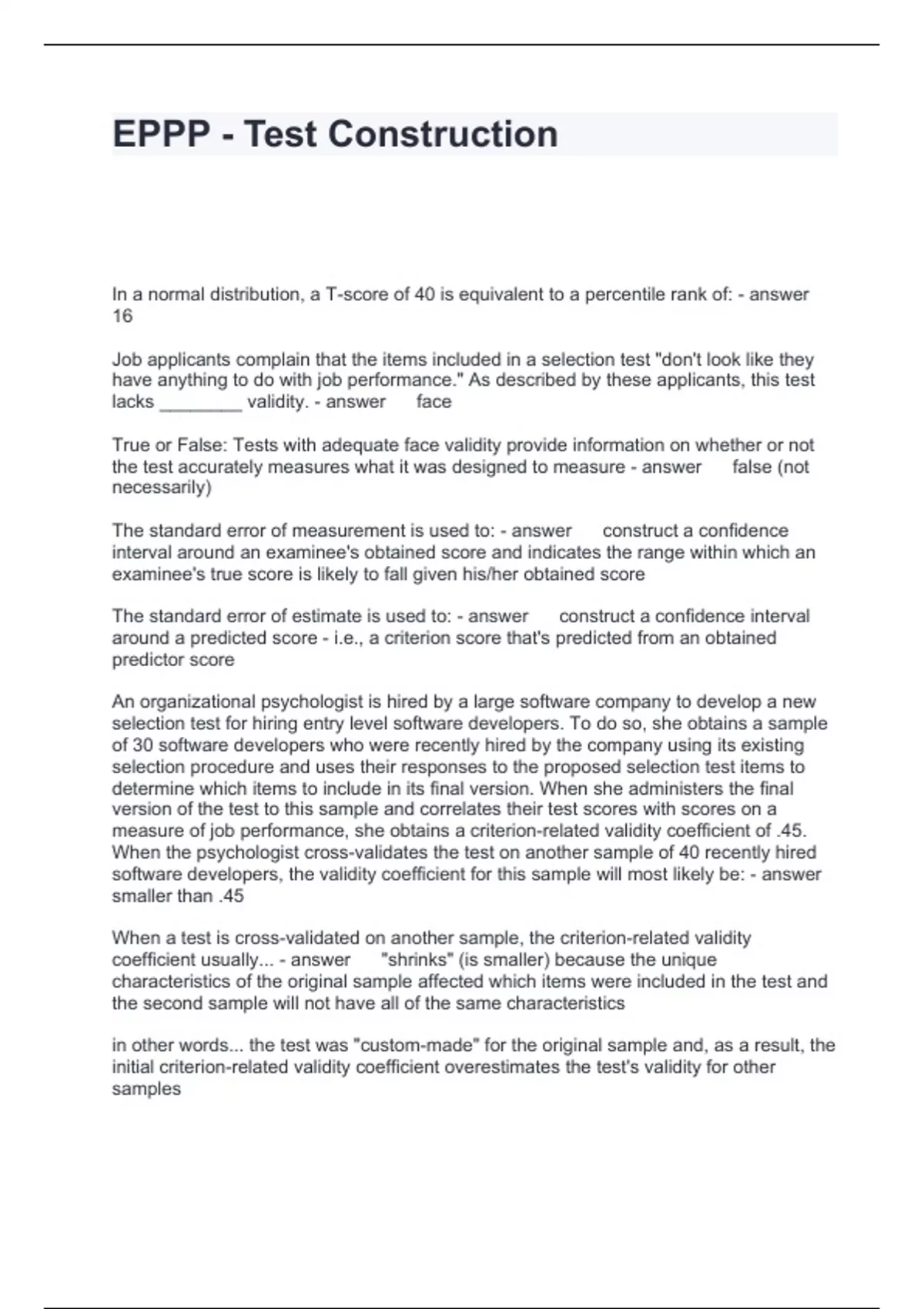 EPPP - Test Construction Questions and Answers 100% Accurate