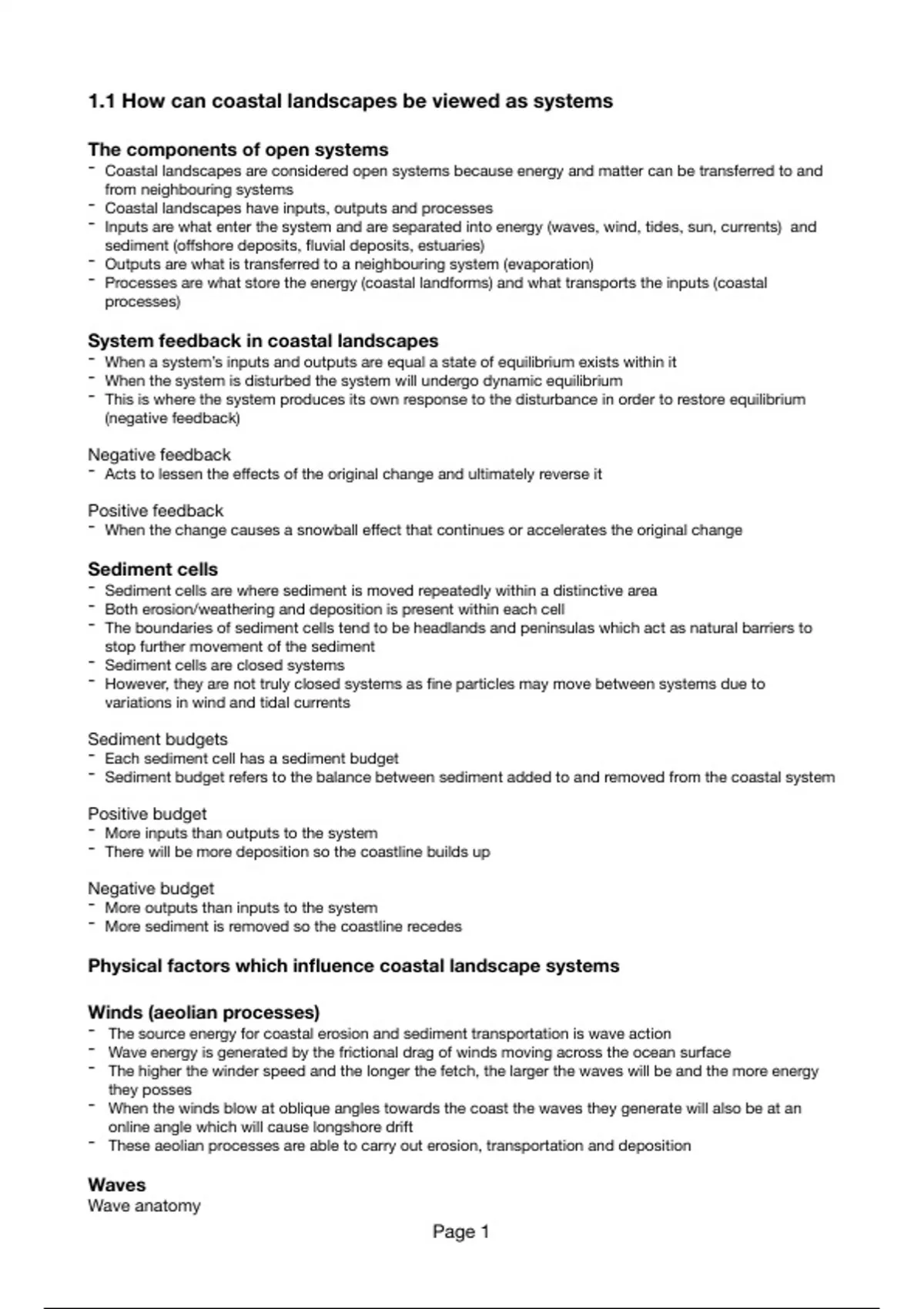 1.1 How can coastal landscapes be viewed as systems