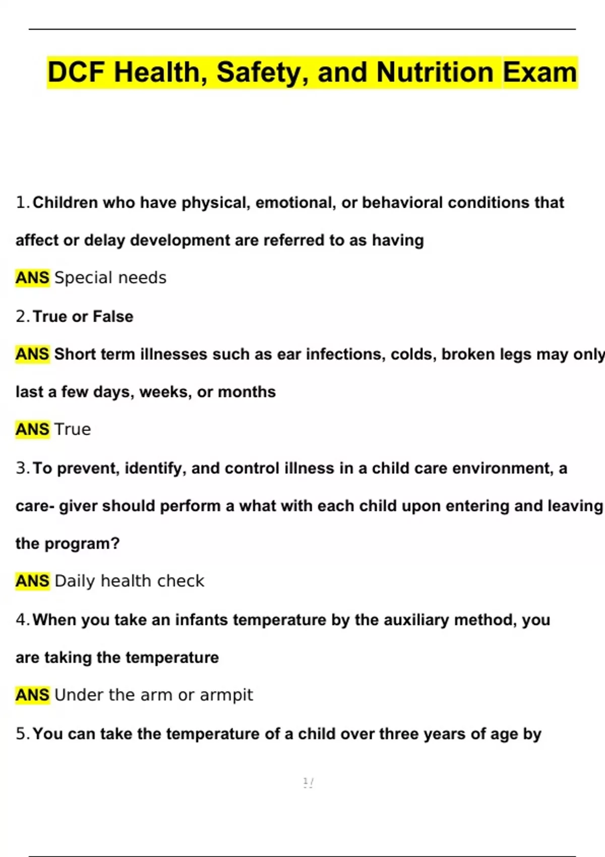 DCF Exam Health, Safety, and Nutrition Actual Exam with Questions and Answers (2024 / 2025) 100% Guarantee Pass