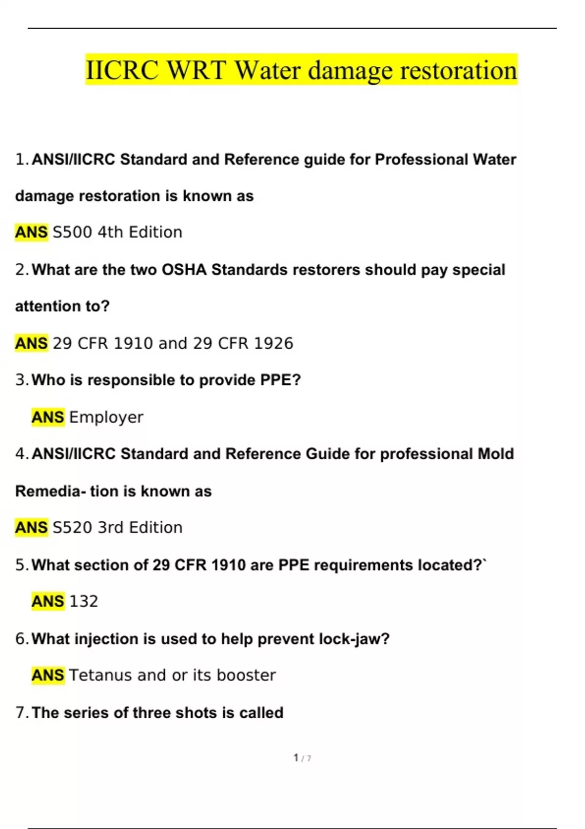 IICRC WRT Water damage restoration Actual Exam with Questions and Answers (2024 / 2025) 100% Guarantee Pass