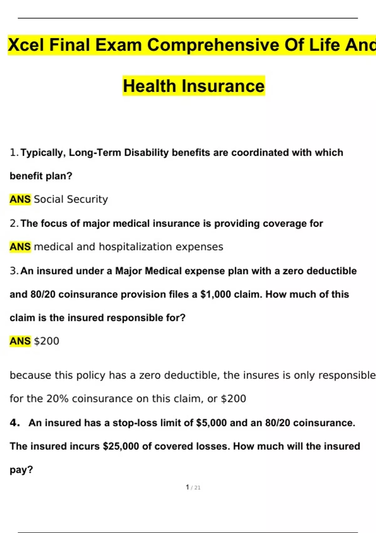 XCEL Final Exam comprehensive of life and health insurance Actual Exam with Questions and Answers (2024 / 2025) 100% Guarantee Pass