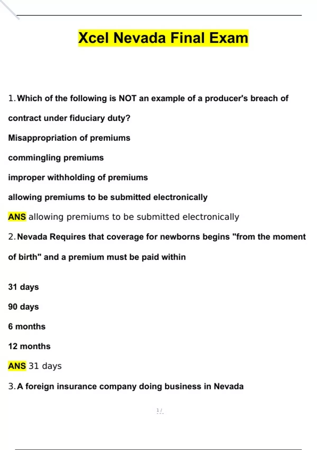 Xcel Nevada Final Exam Actual Exam with Questions and Answers (2024 / 2025) 100% Guarantee Pass