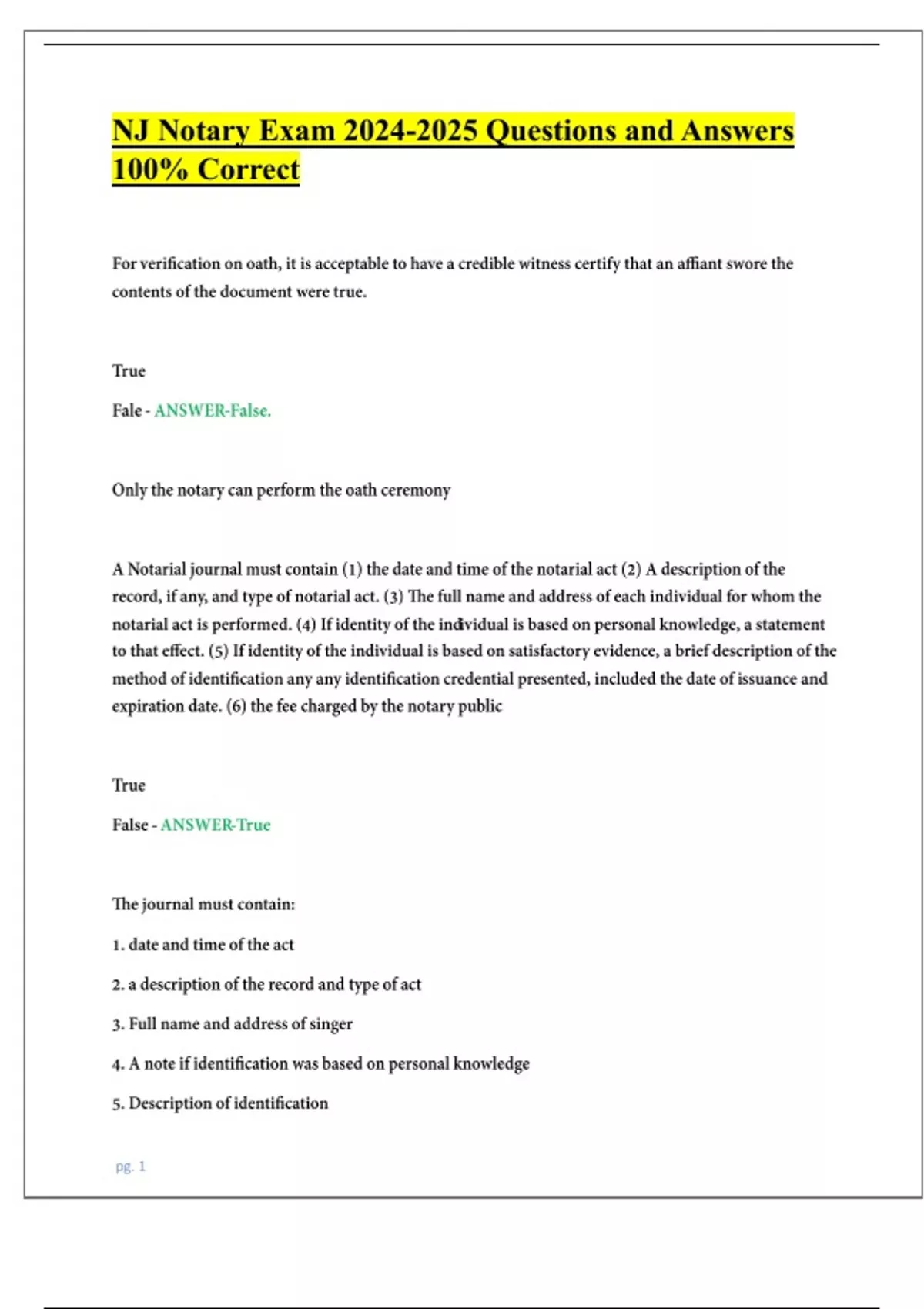 NJ Notary Exam 2024/2025 Questions and Answers 100% Correct