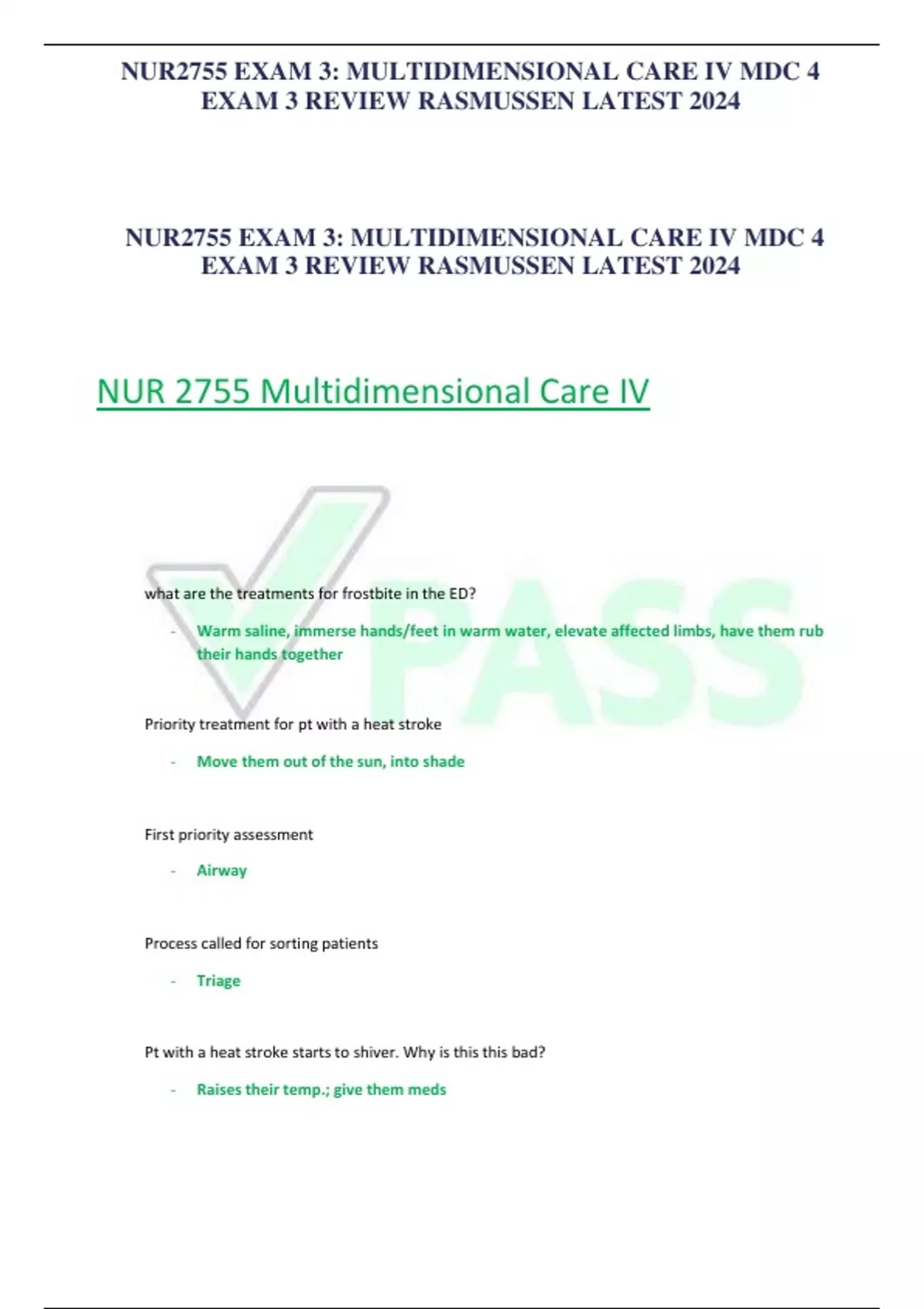 NUR2755 EXAM 3 MULTIDIMENSIONAL CARE IV MDC 4 EXAM 3 REVIEW RASMUSSEN LATEST 2024