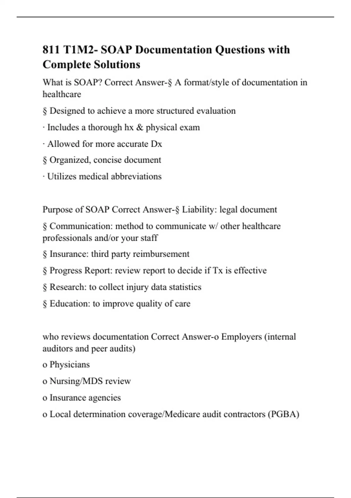811 T1M2- SOAP Documentation Questions with Complete Solutions