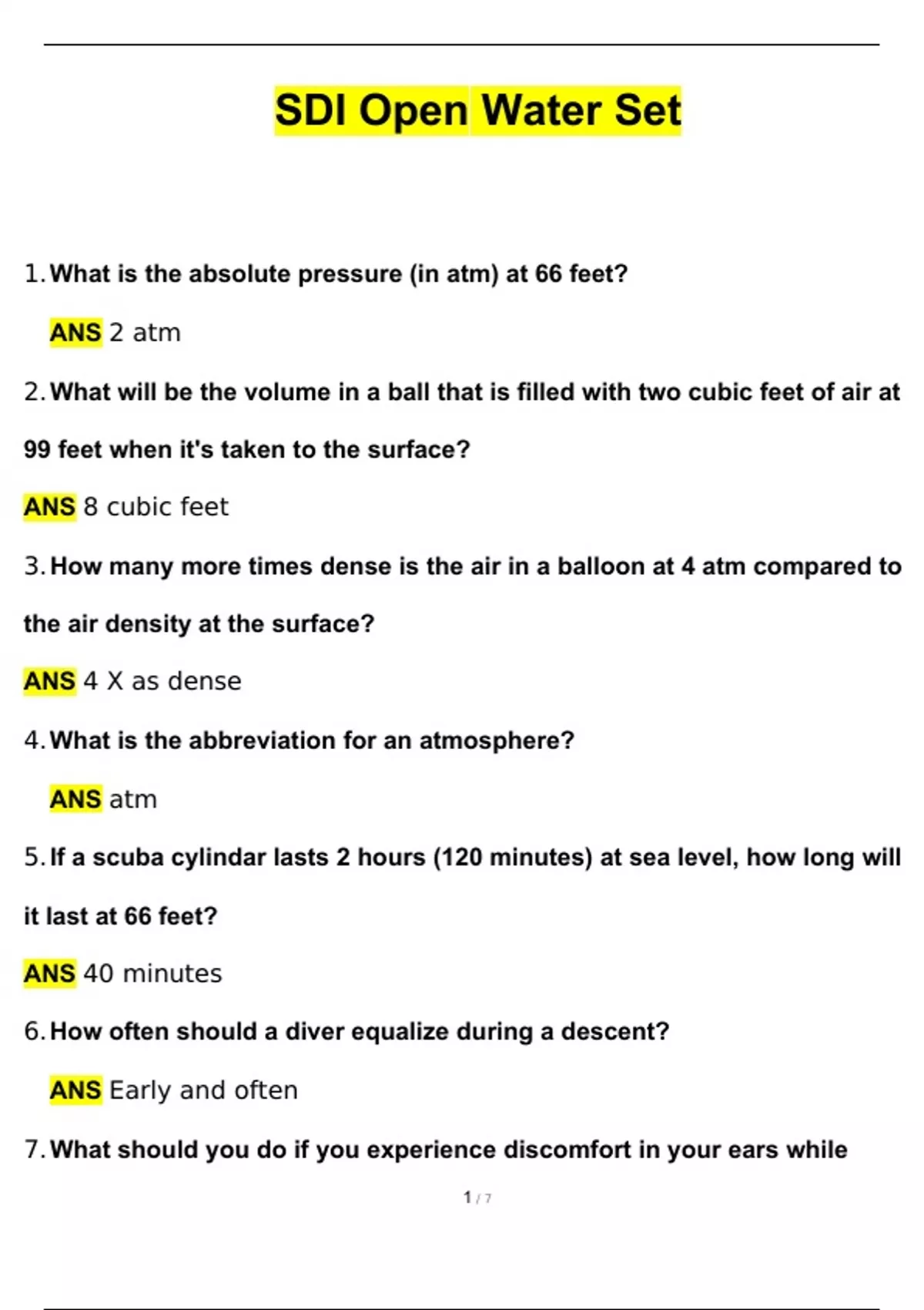 SDI Open Water Actual Exam with Questions and Answers (2024 / 2025) 100% Guarantee Pass