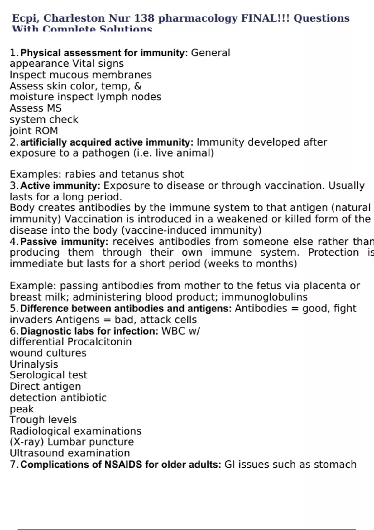 Ecpi, Charleston Nur 138 pharmacology FINAL!!! Questions With Complete Solutions