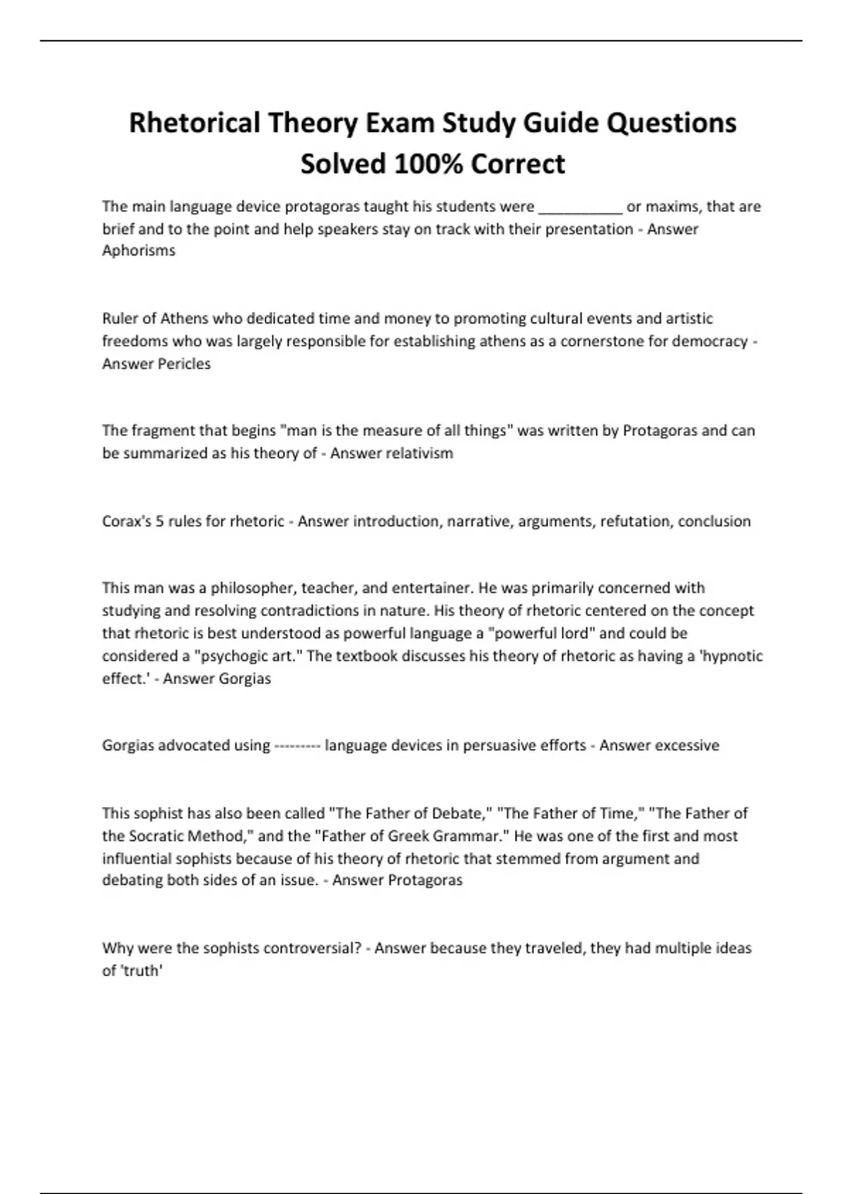 Rhetorical Theory Exam Study Guide Questions Solved 100% Correct
