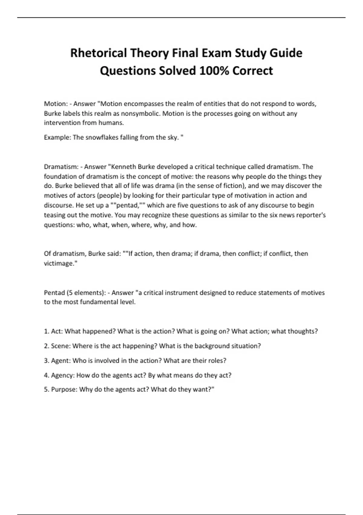 Rhetorical Theory Final Exam Study Guide Questions Solved 100% Correct