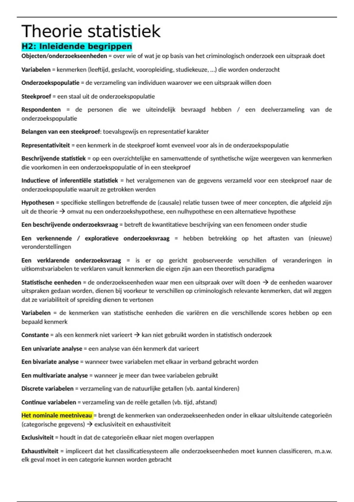 Het nominale meetniveau = brengt de kenmerken van onderzoekseenheden onder in elkaar uitsluitende categorieën