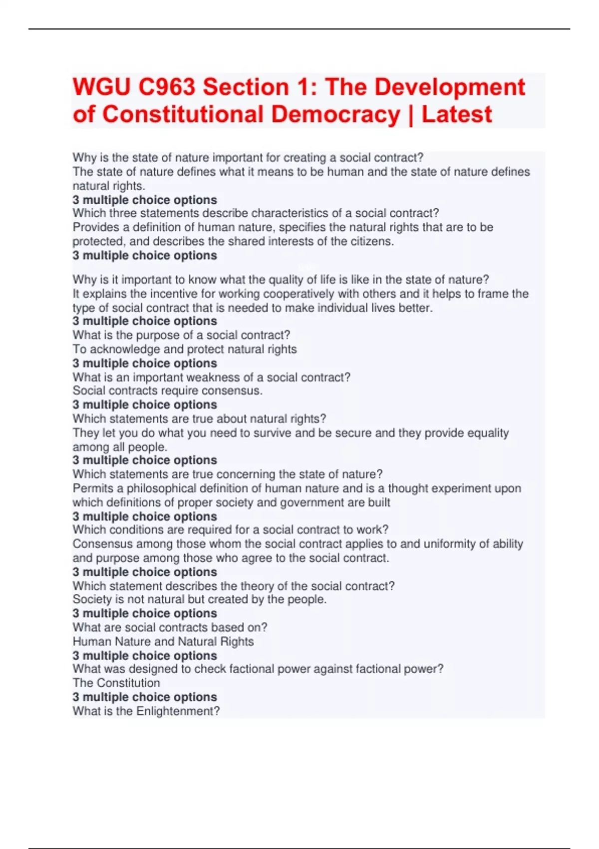 WGU C963 Section 1: The Development of Constitutional Democracy | Latest