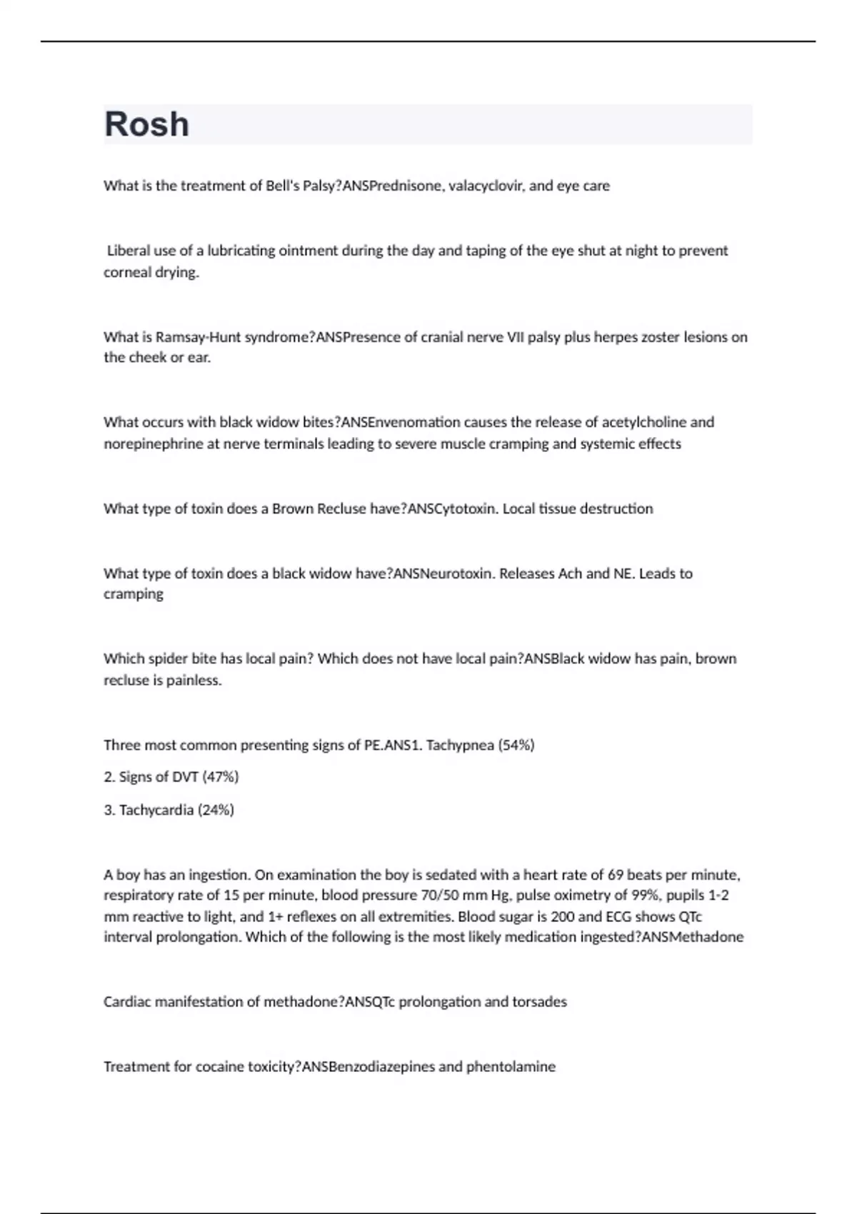 Rosh Exam Questions with Correct Answers 2024 (VERIFIED 100%)