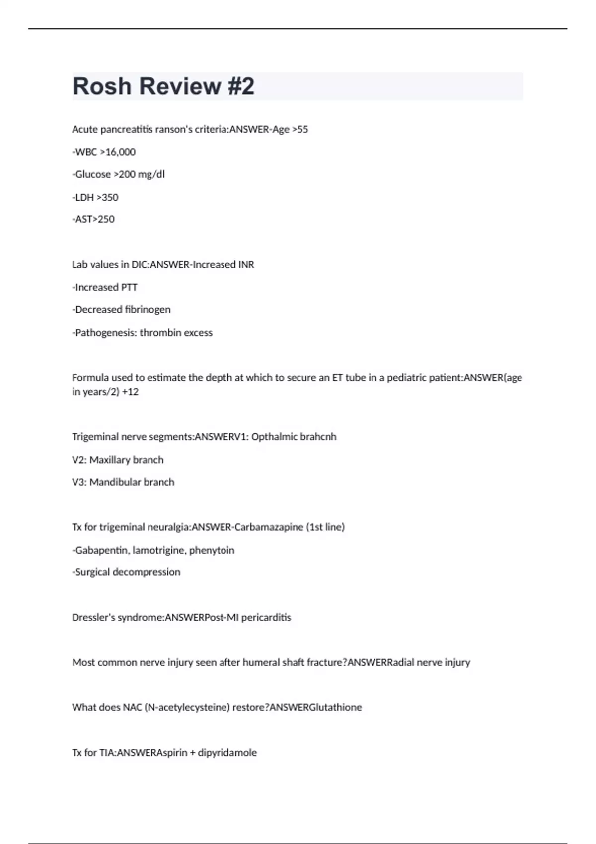 Rosh Review #2 Questions With Solutions (GRADED A+)