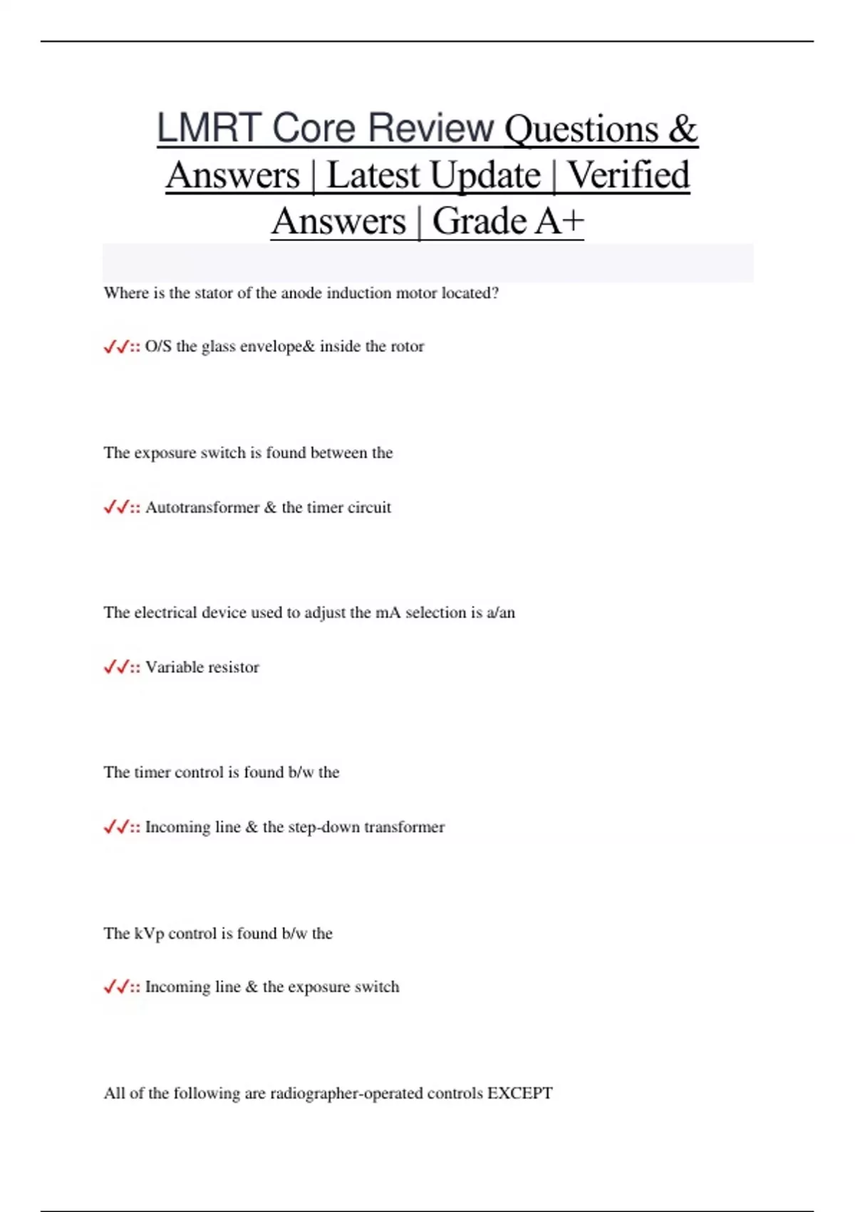 LMRT Core Review Questions & Answers | Latest Update | Verified Answers | Grade A+