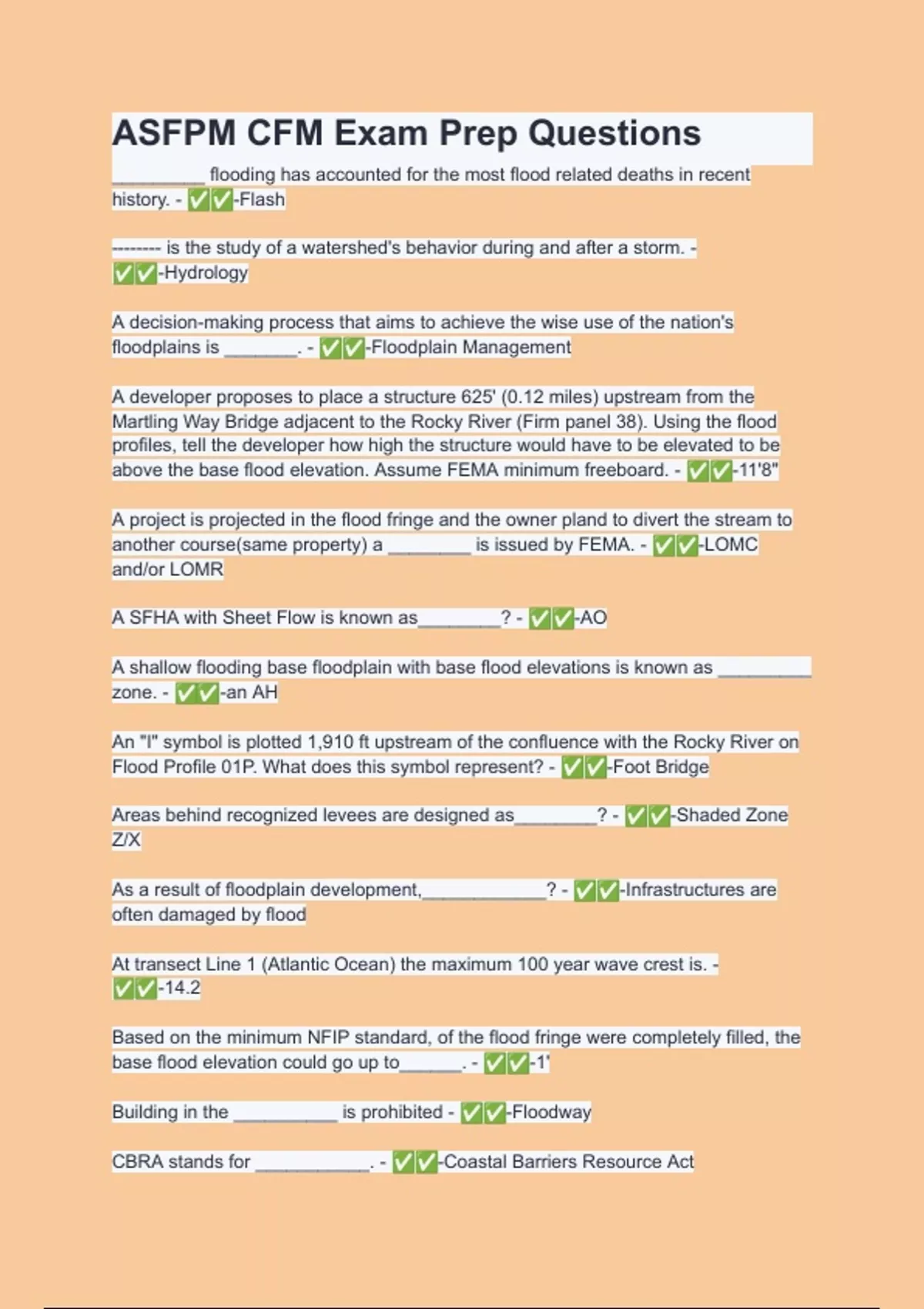 ASFPM CFM Exam Prep Questions with 100% Correct Answers Verified Latest Update 2024