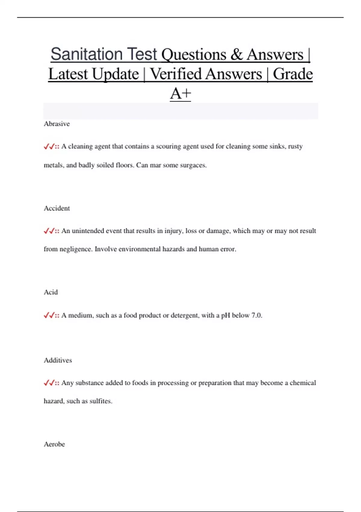 Sanitation Test Questions & Answers | Latest Update | Verified Answers | Grade A+