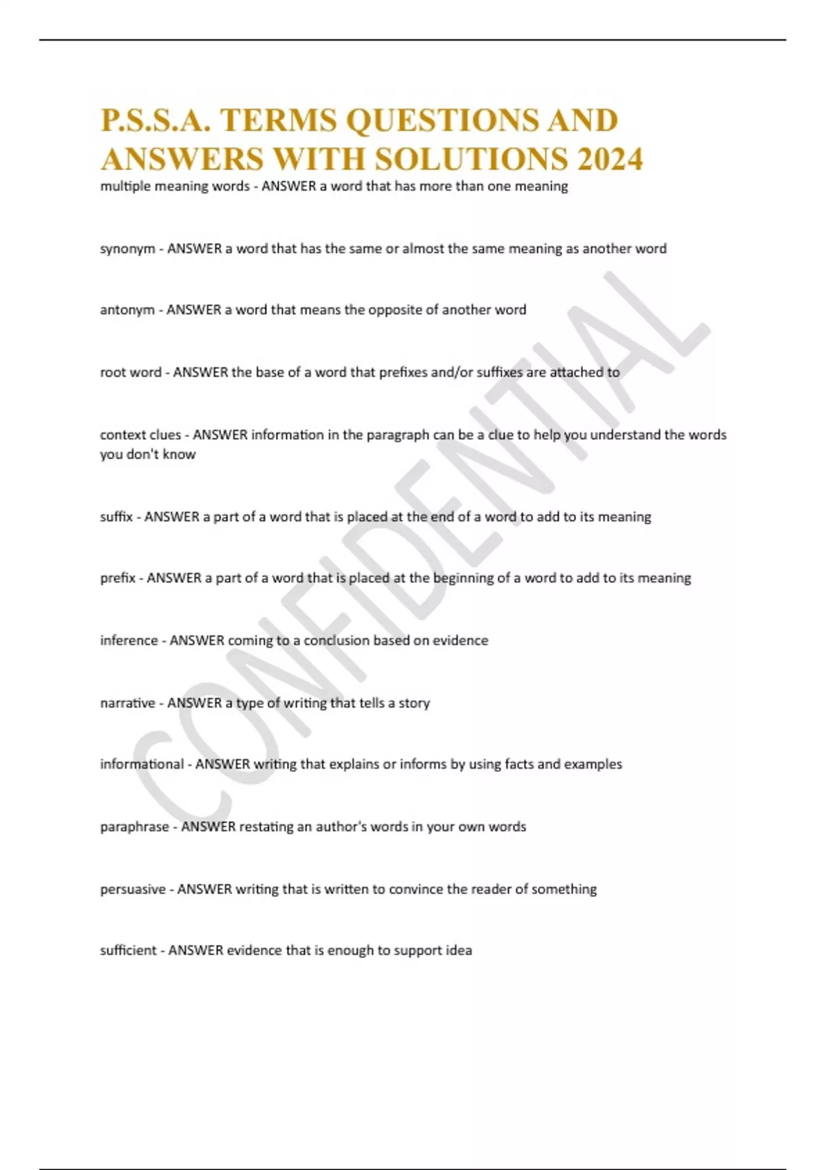 pssa terms questions and answers with solution