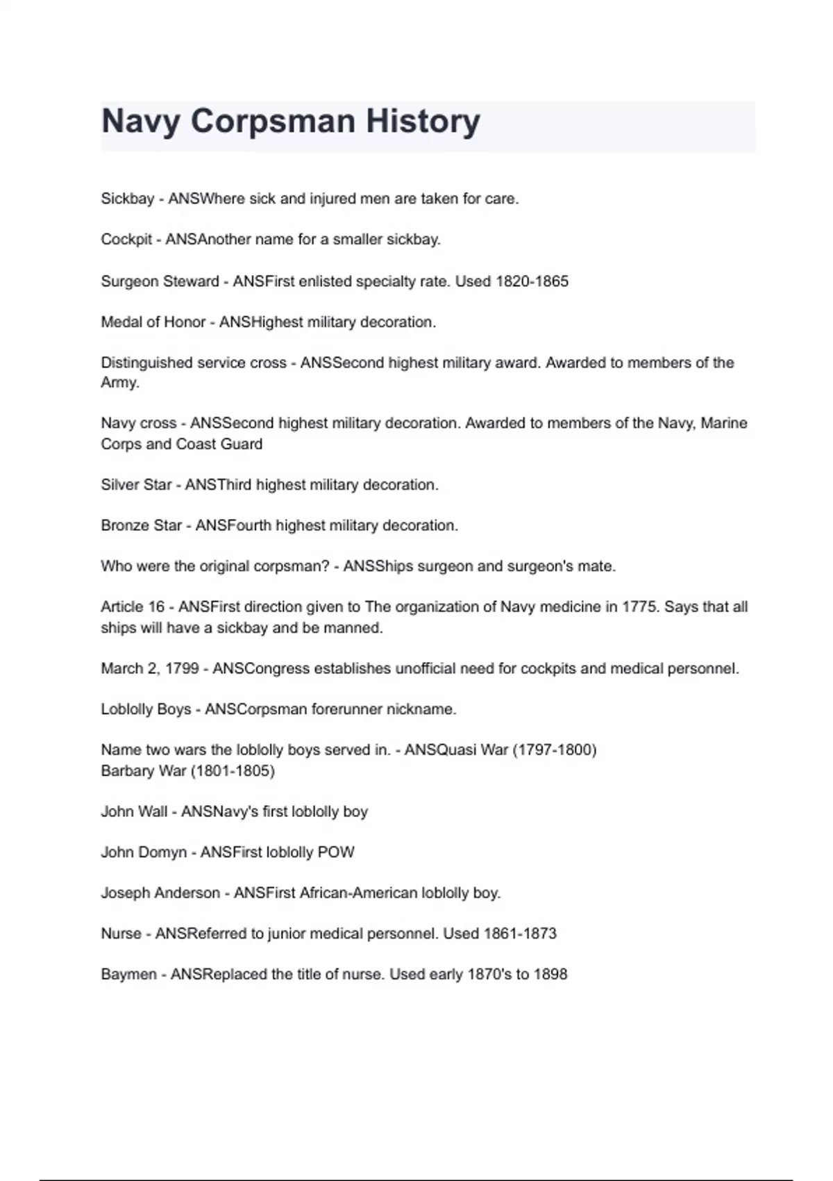 Navy Corpsman History questions and answers graded A+ by experts 2024/2025