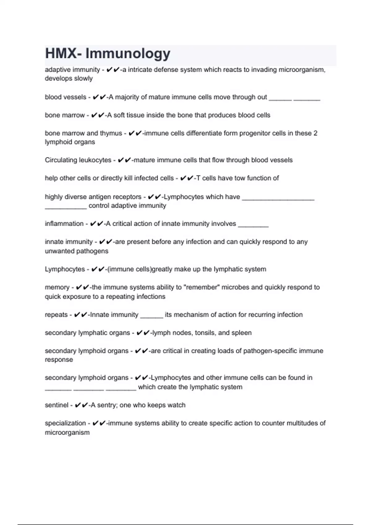 HMX- Immunology Questions with 100% Correct Answers Verified Latest Update 2024