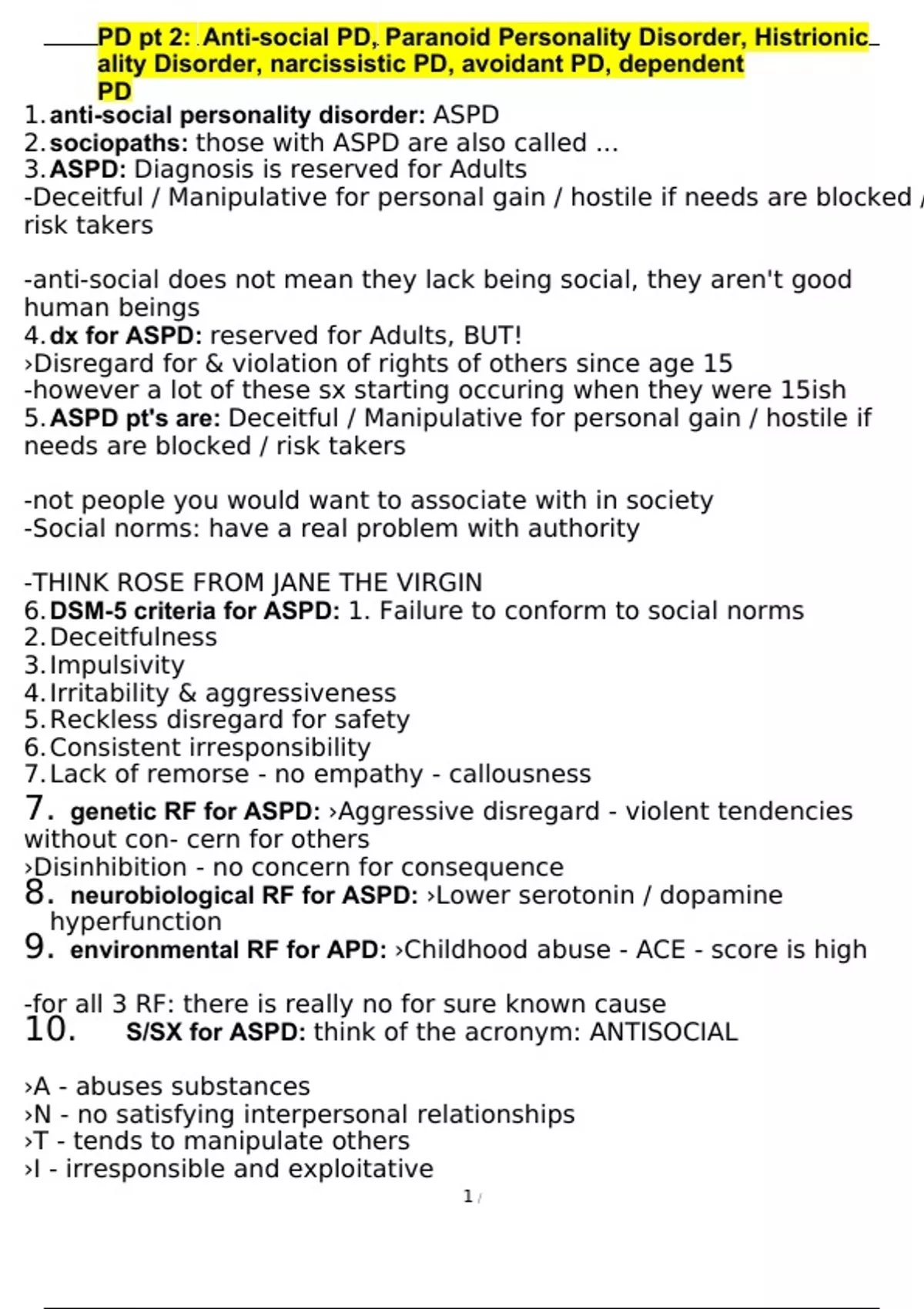 PD Pt 2: Anti-social PD, Paranoid Personality Diso