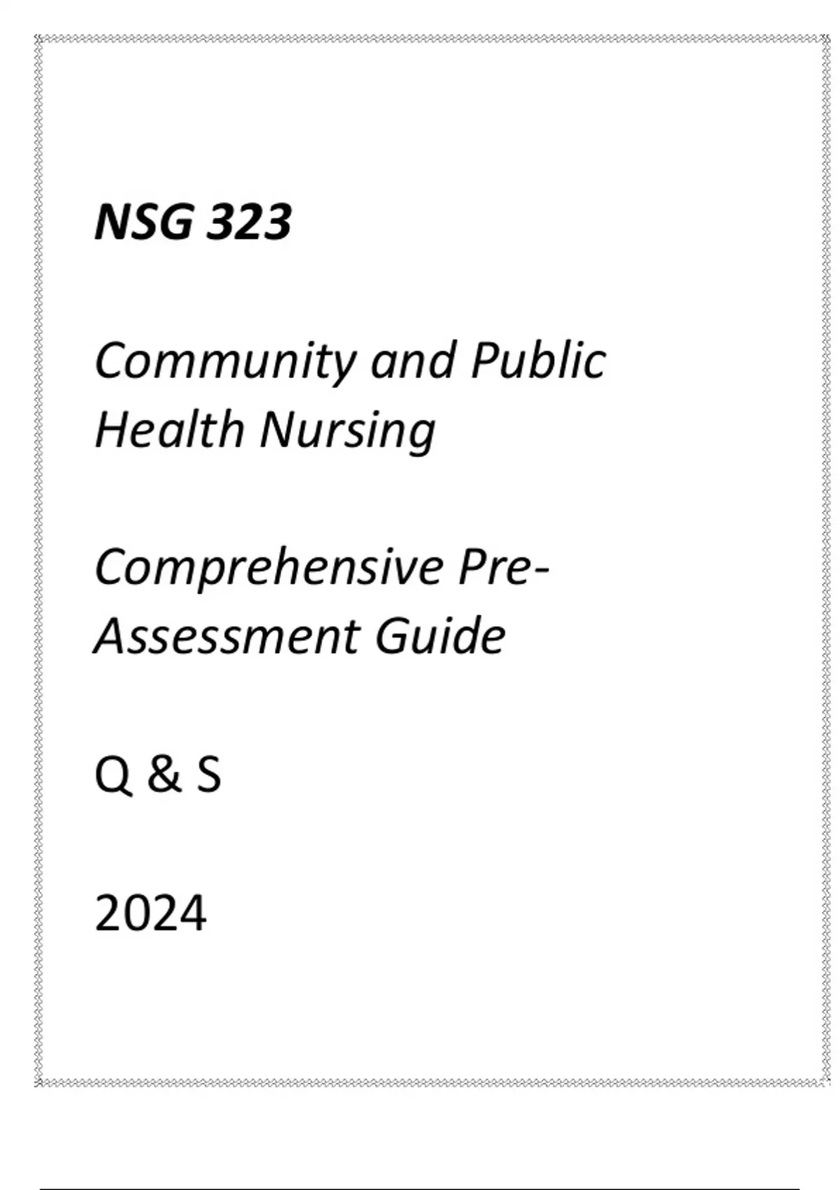 (HU) NSG 323 Community and Pyblic Health Nursing Comprehensive Pre-Assessment Guide Q & S 202(HU) NSG 323 Community and Pyblic Health Nursing Comprehensive Pre-A(HU) NSG 323 Community and Pyblic Health Nursing Comprehensive Pre-Assessment Guide Q & S ment Guide Q & S 2024.4.