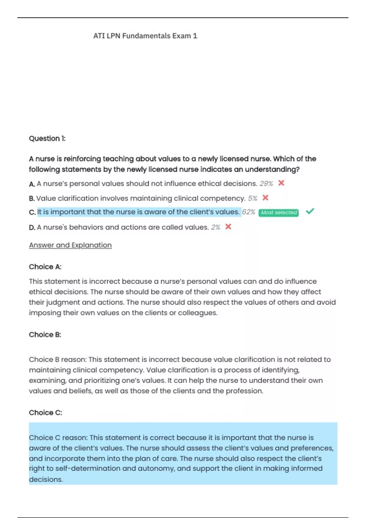 ATI LPN FUNDAMENTALS EXAM 1 WITH COMPLETE SOLUTION