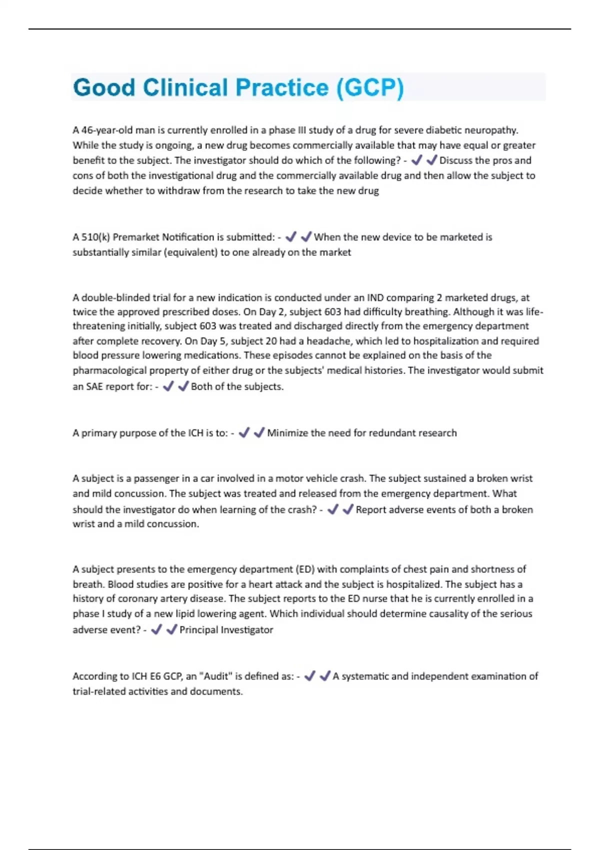 Good Clinical Practice (GCP) Questions And Answers With Verified Solutions